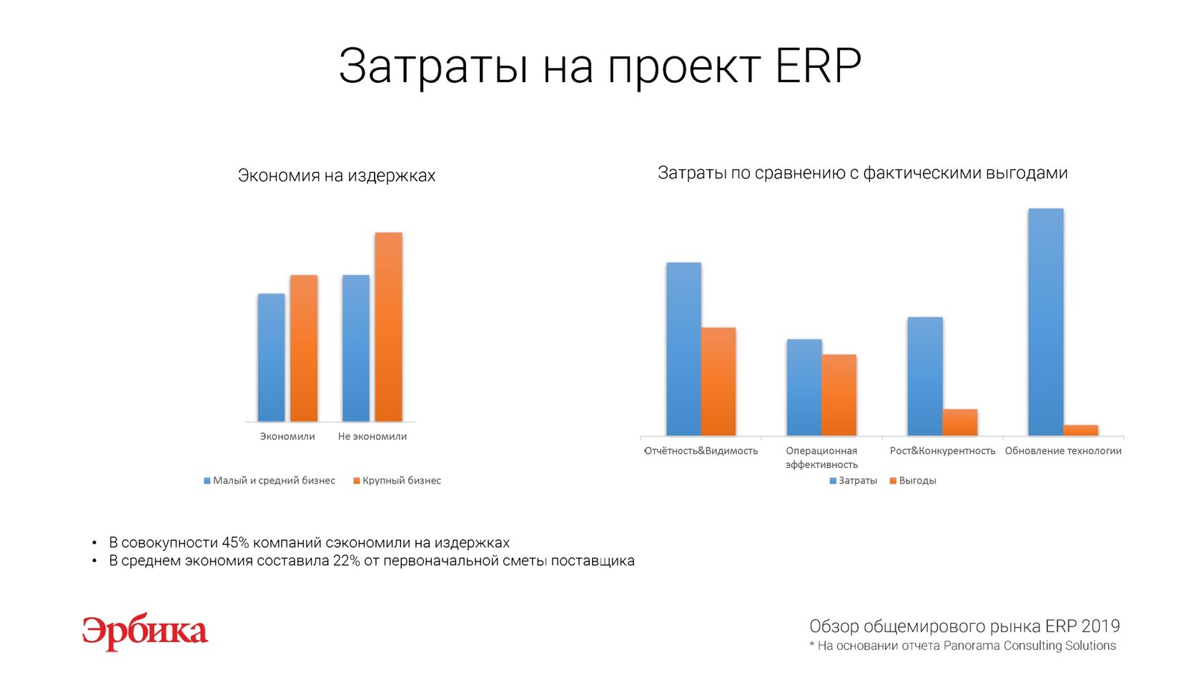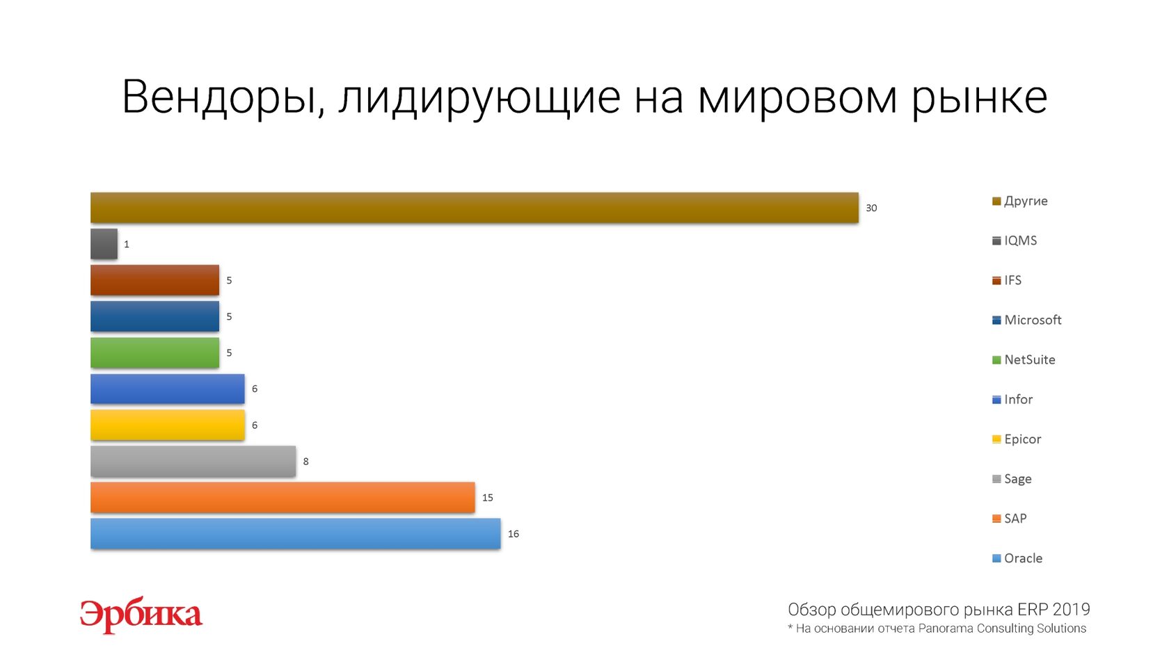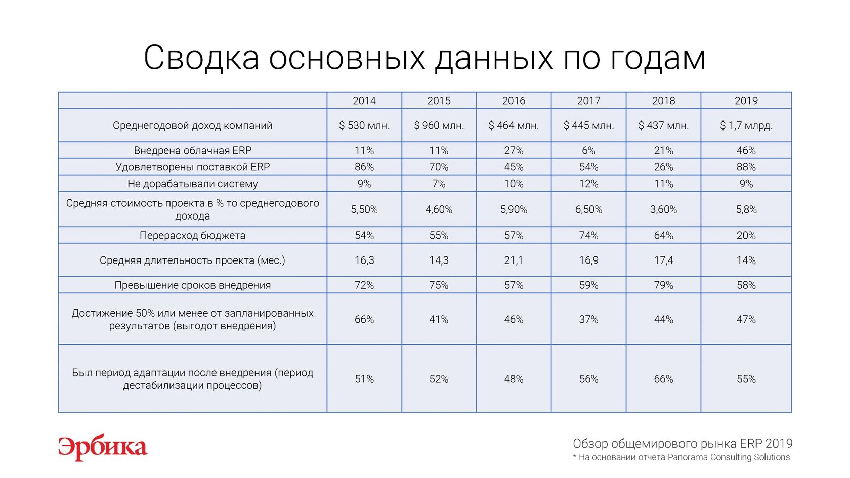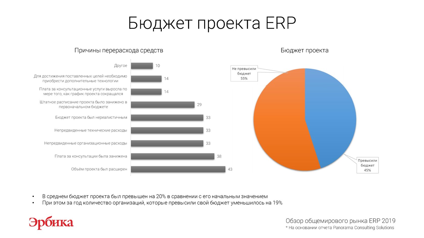 На основании отчета "Обзор рынка ERP 2019" международной исследовательской компании Panorama Consulting Solutions