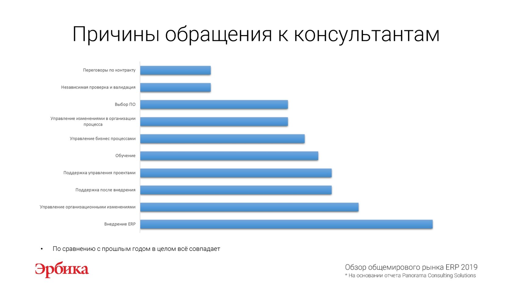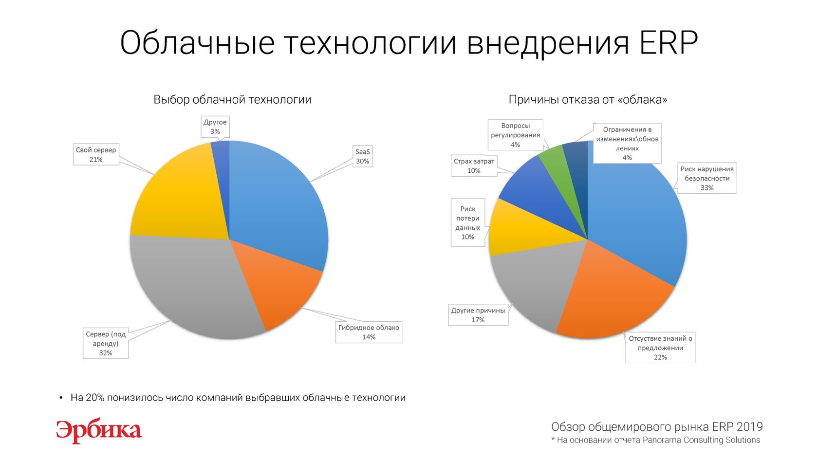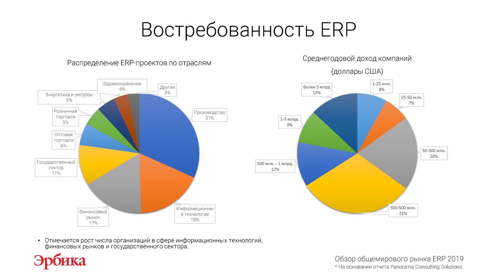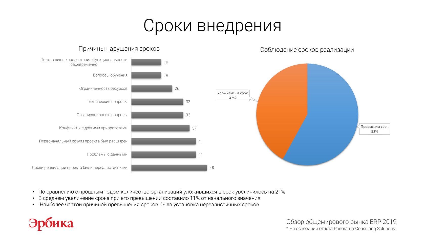 На основании отчета "Обзор рынка ERP 2019" международной исследовательской компании Panorama Consulting Solutions
