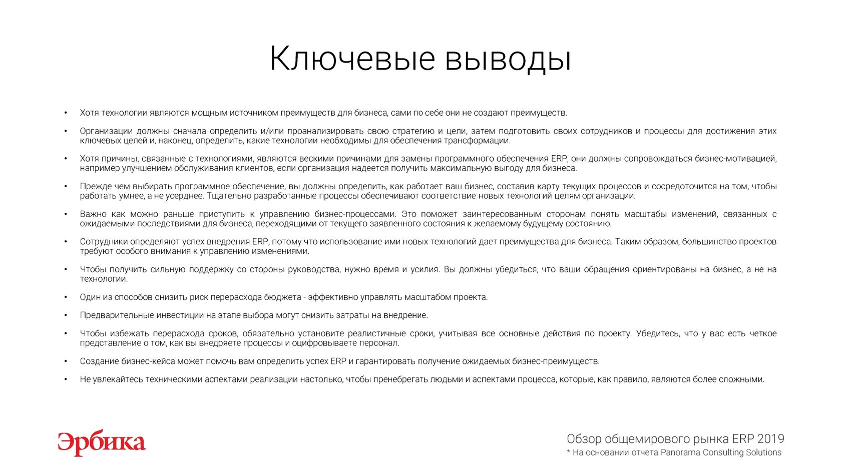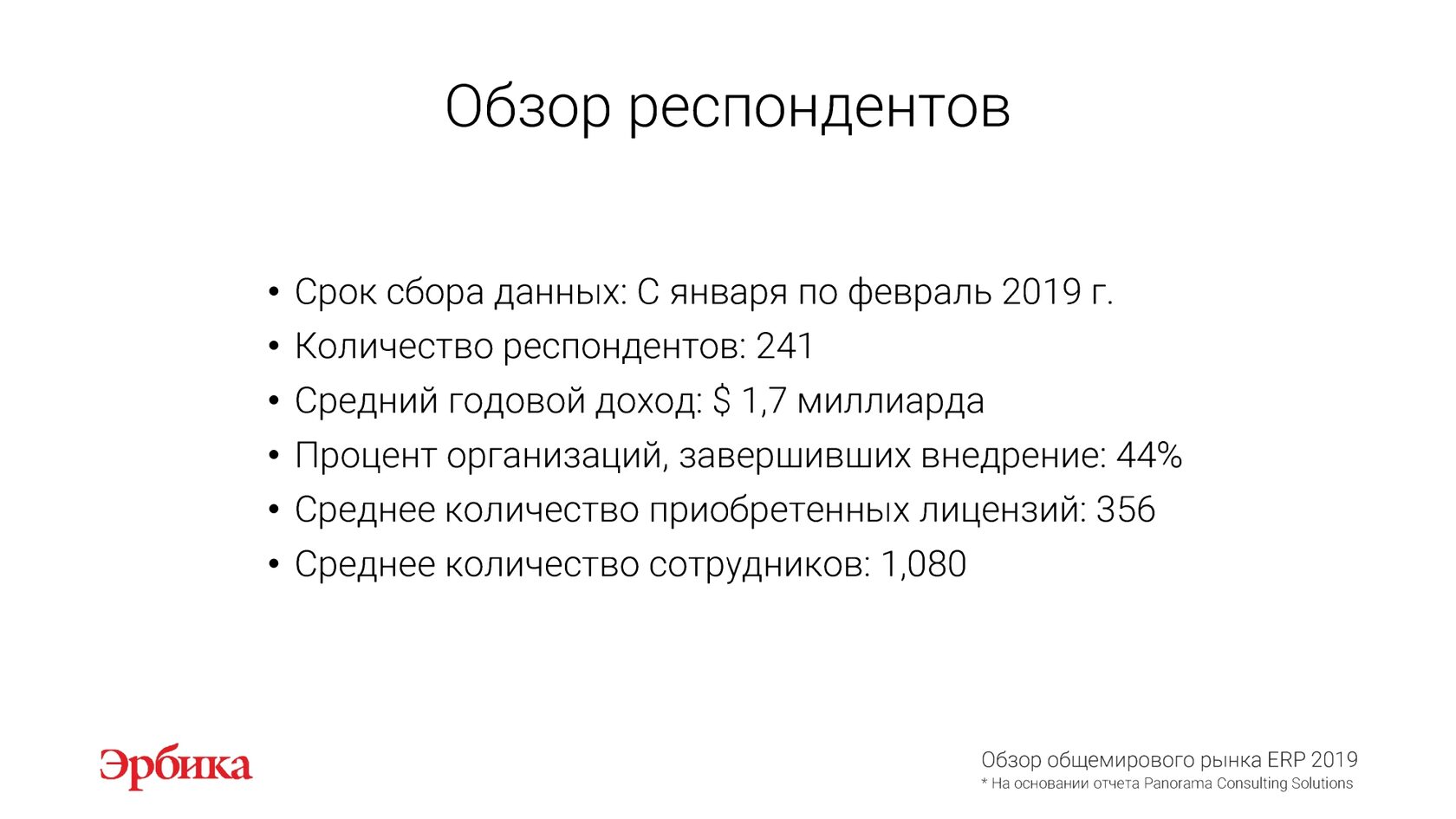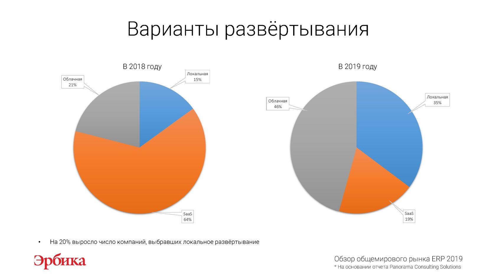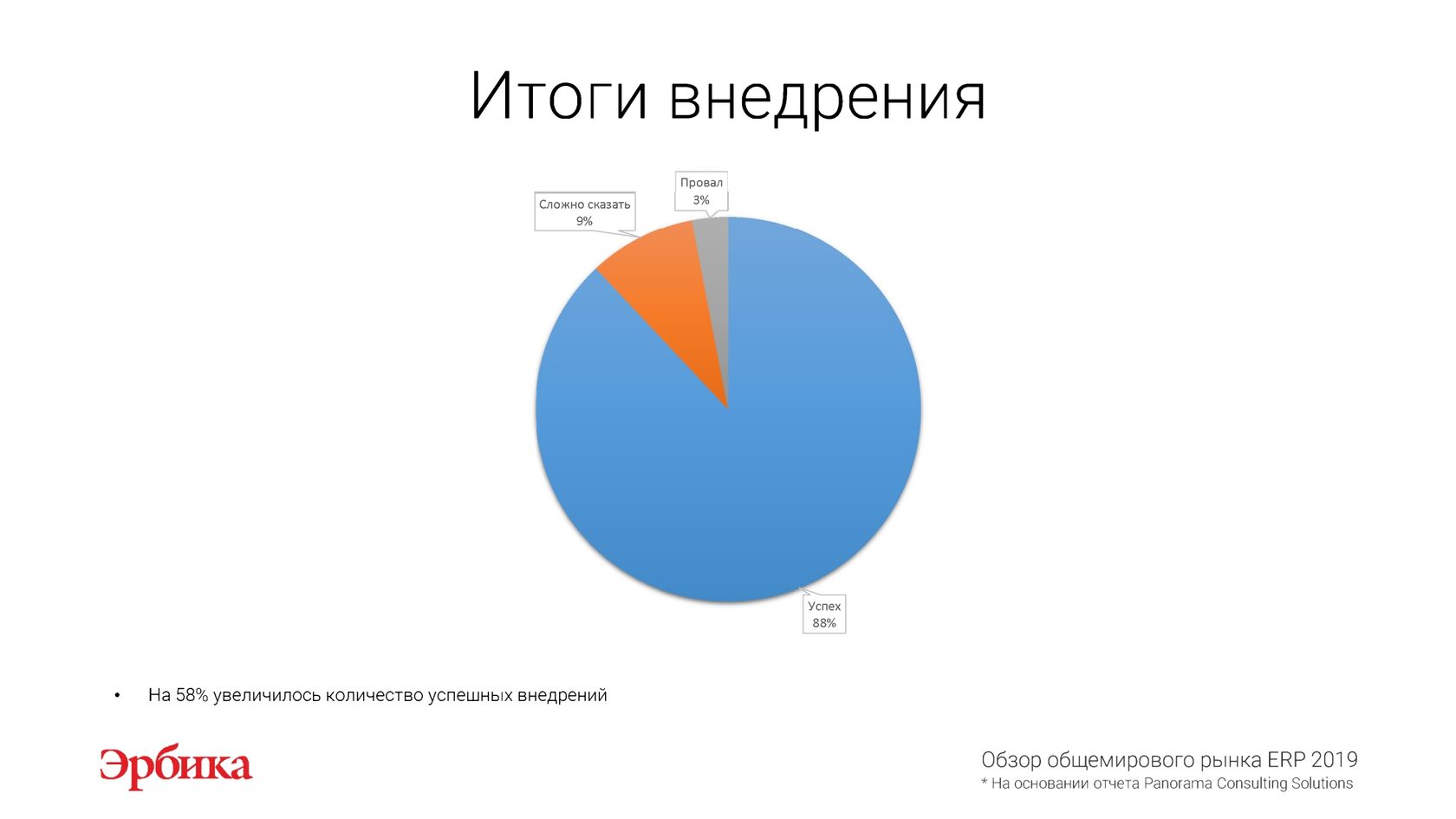 На основании отчета "Обзор рынка ERP 2019" международной исследовательской компании Panorama Consulting Solutions