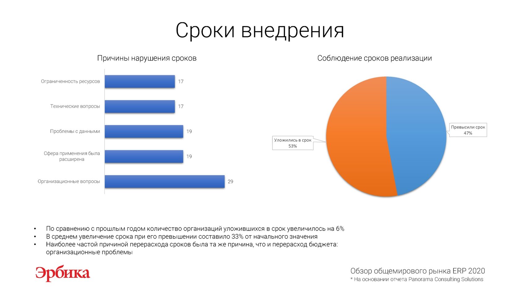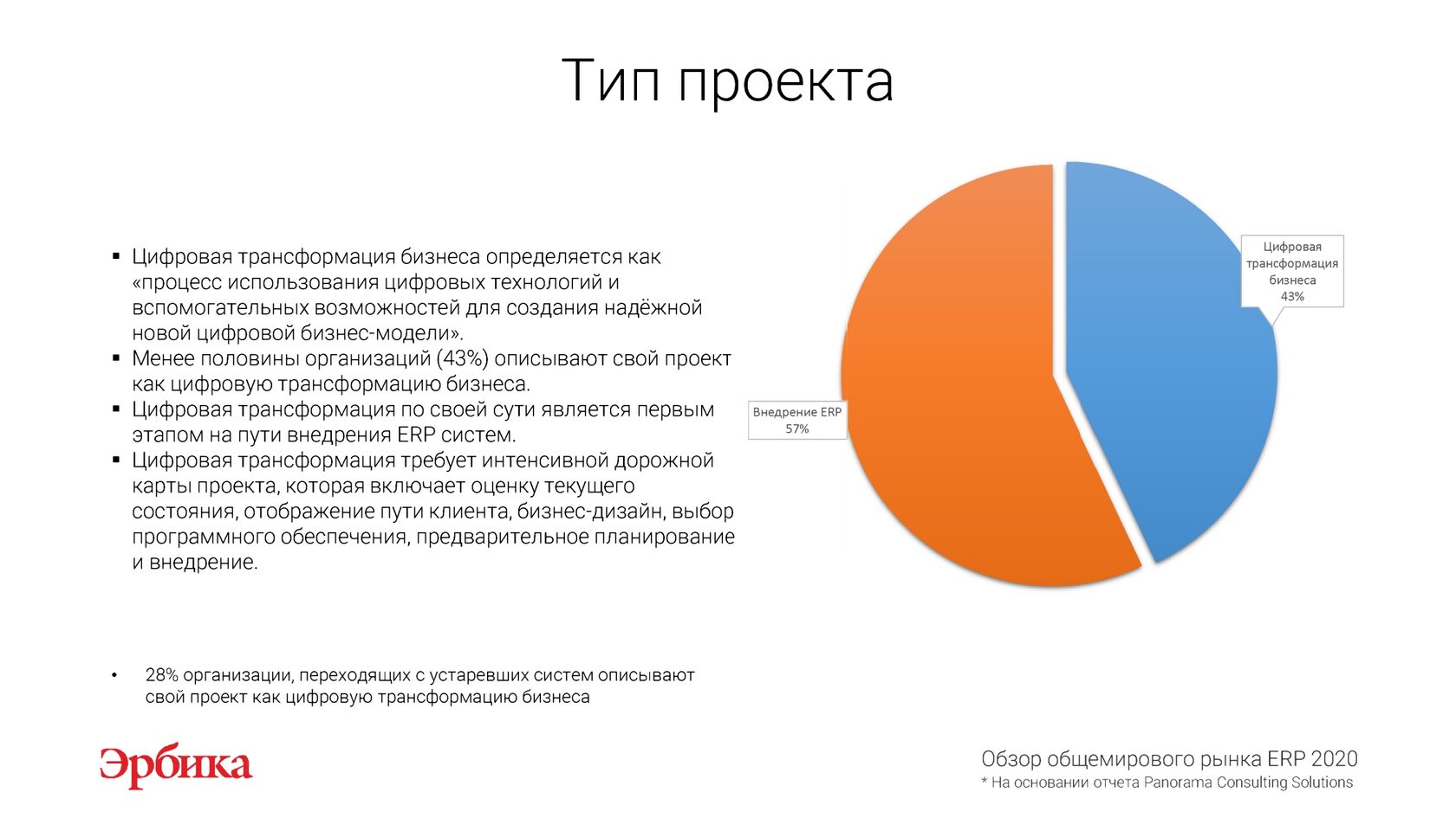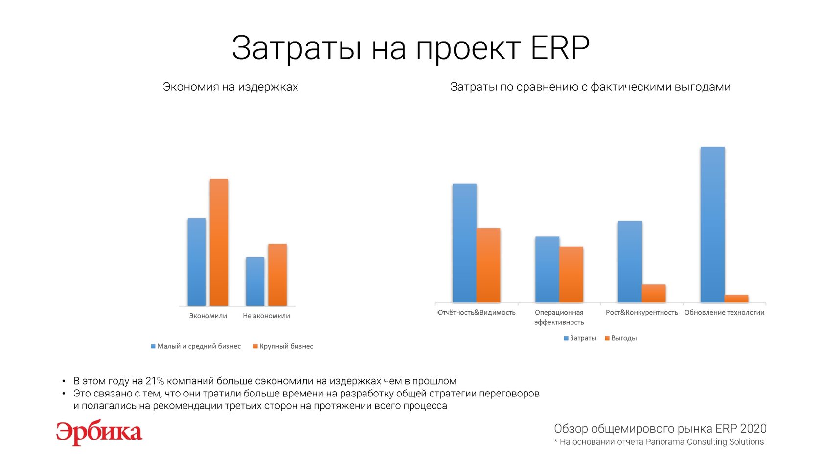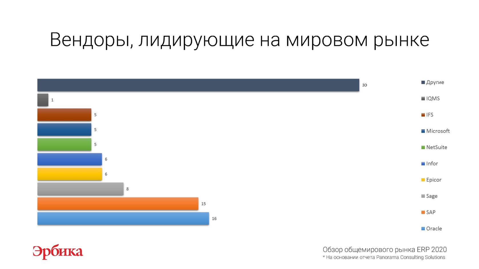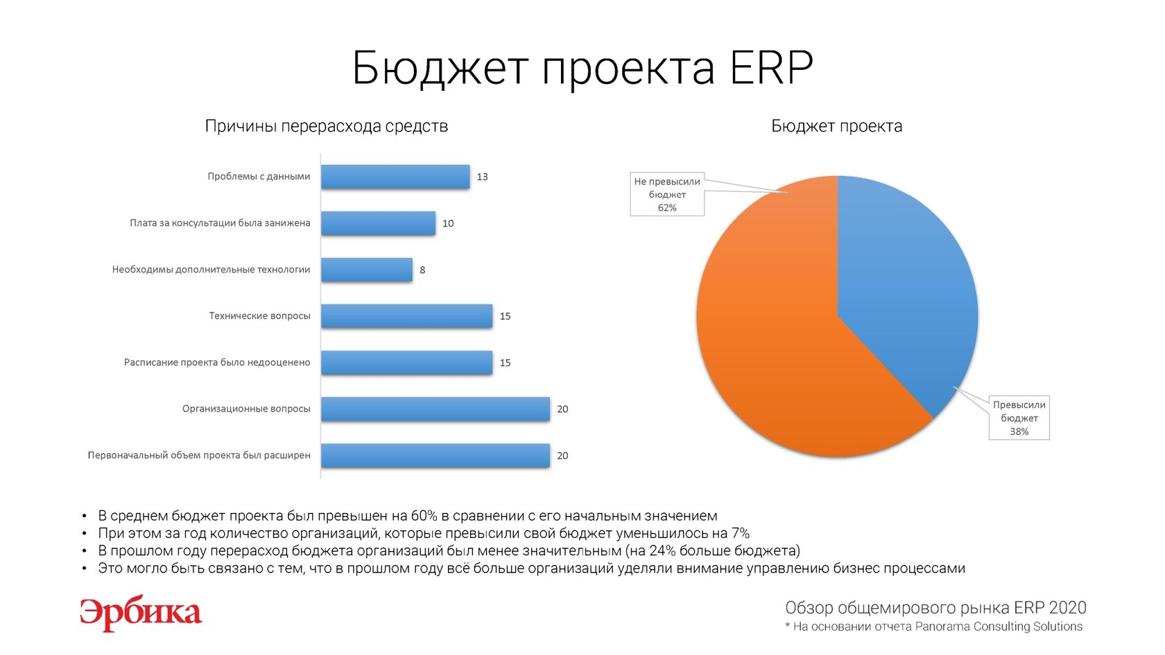 На основании отчета "Обзор рынка ERP 2020" международной исследовательской компании Panorama Consulting Solutions