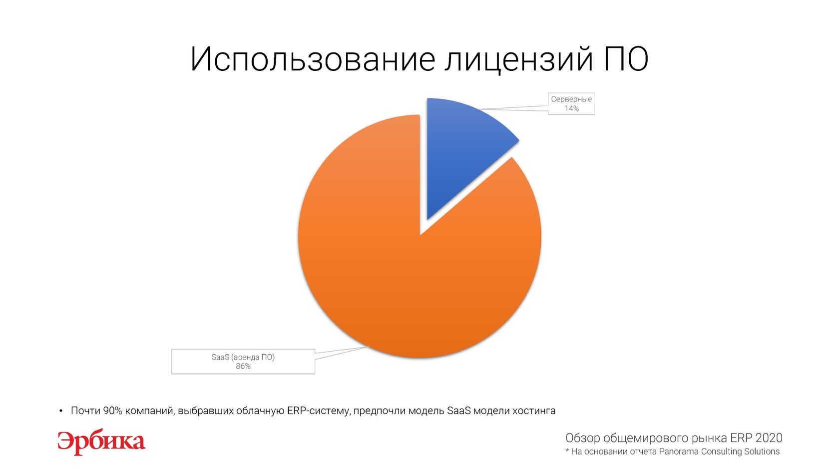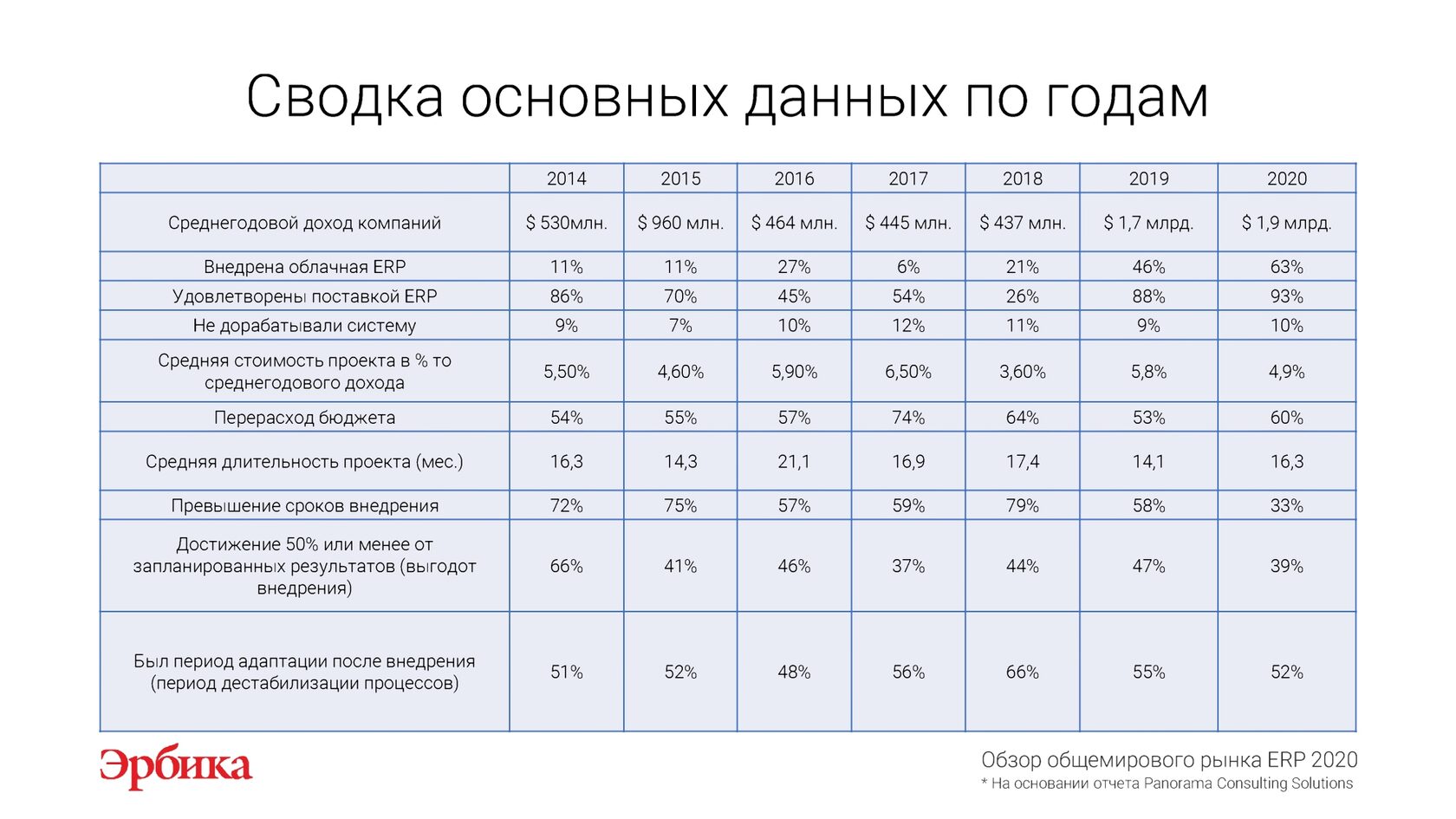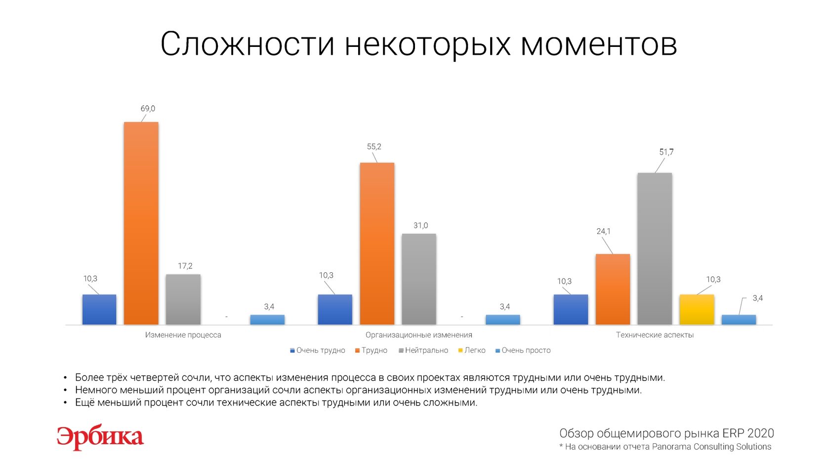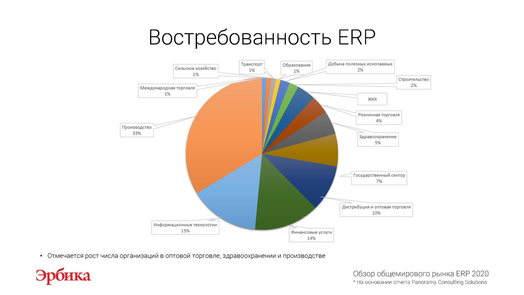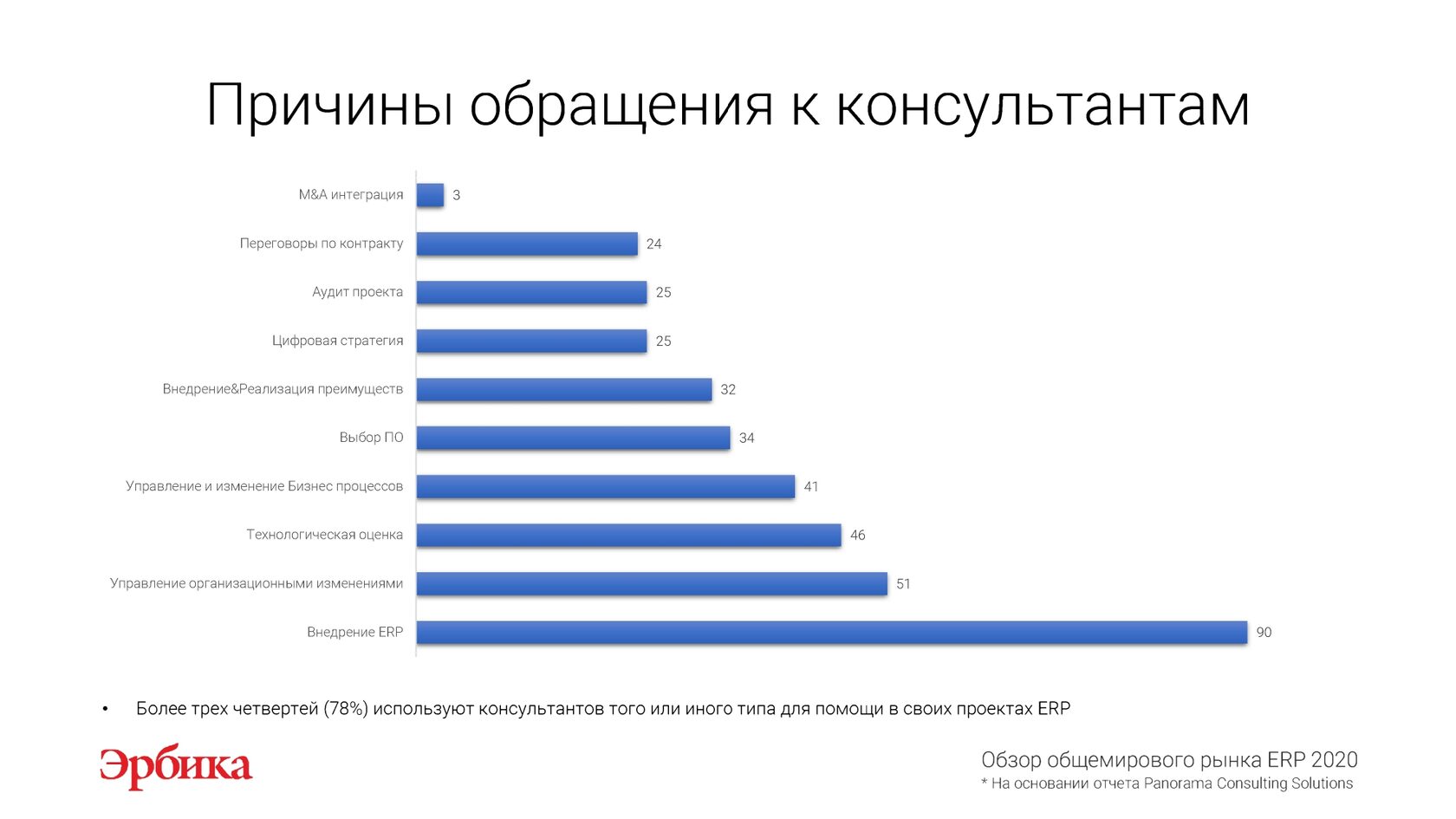 На основании отчета "Обзор рынка ERP 2020" международной исследовательской компании Panorama Consulting Solutions