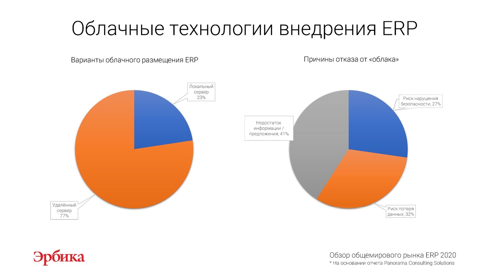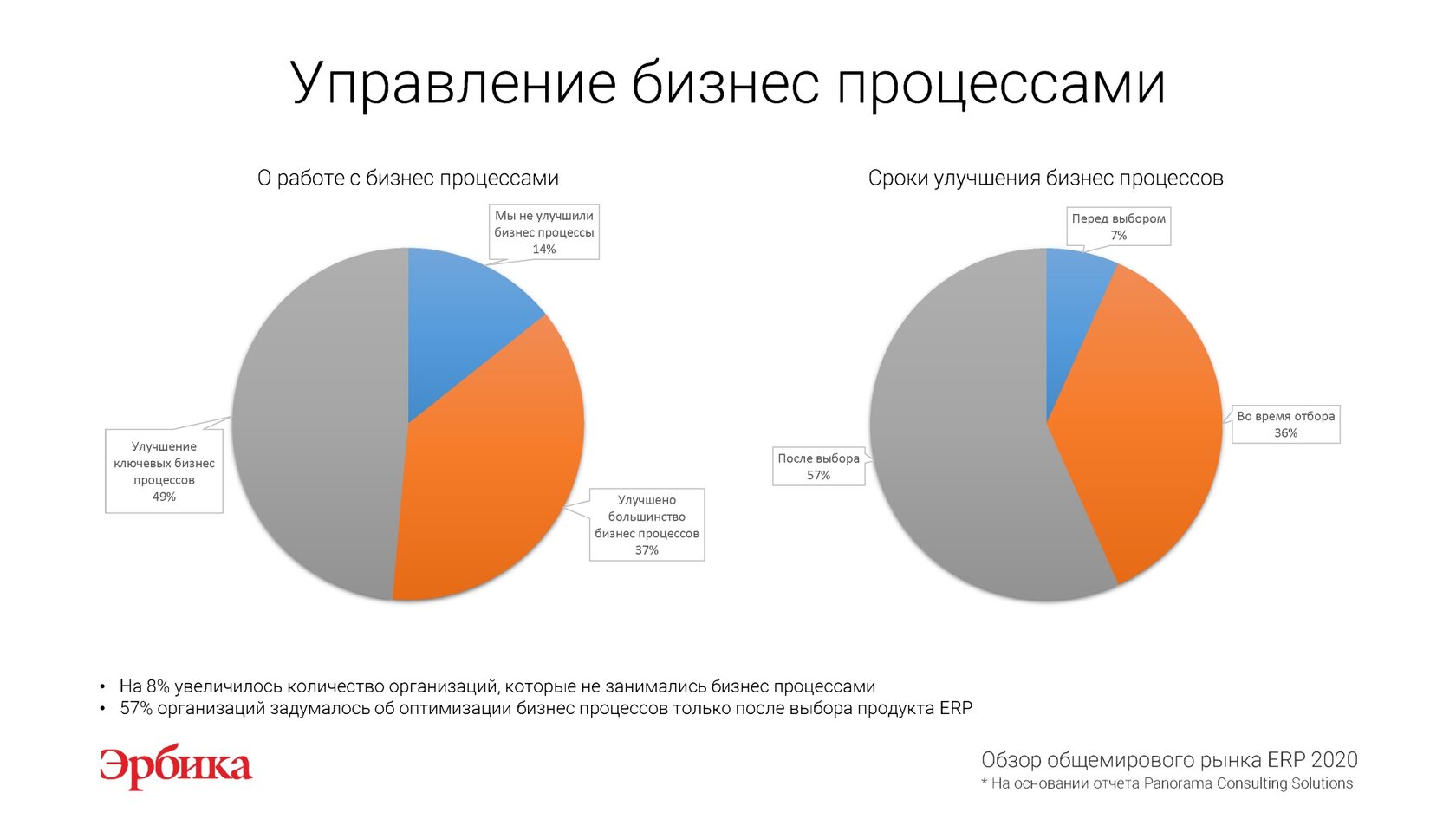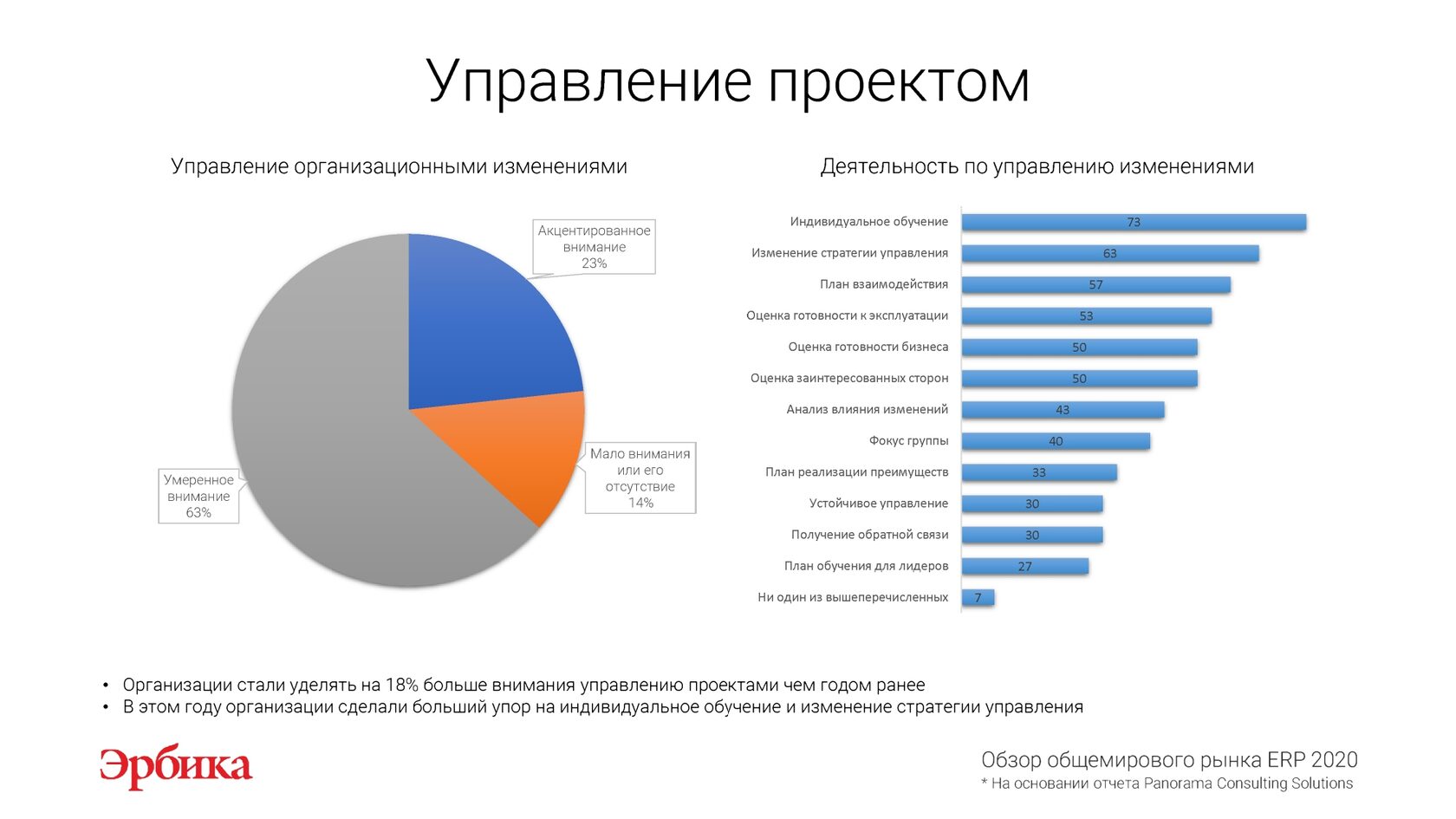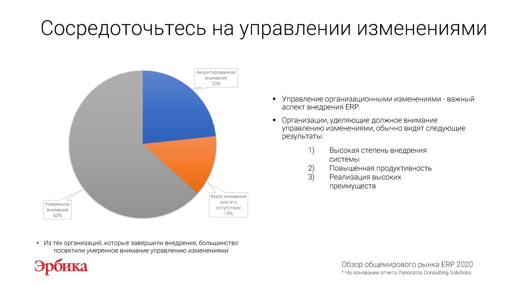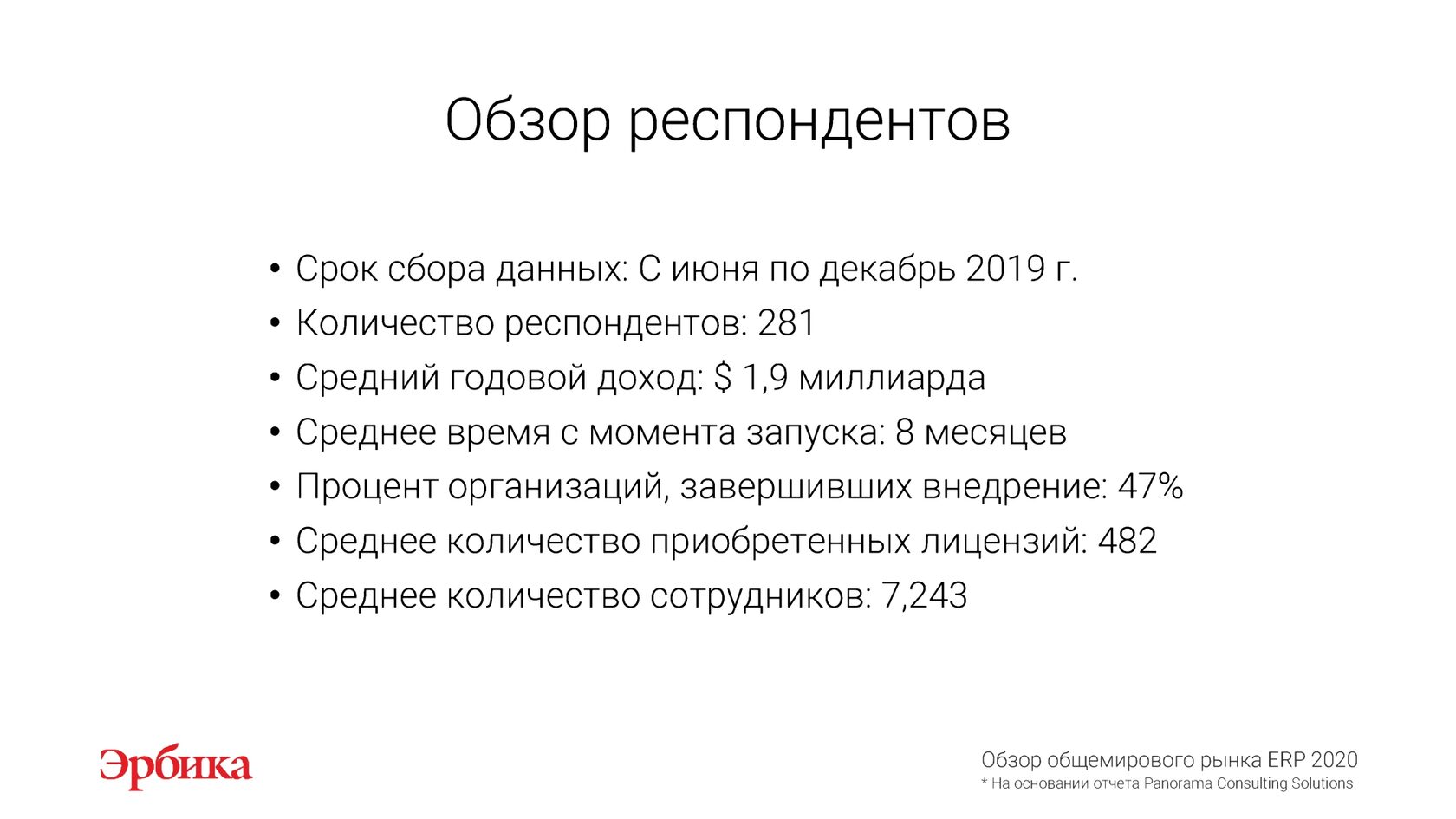 На основании отчета "Обзор рынка ERP 2020" международной исследовательской компании Panorama Consulting Solutions