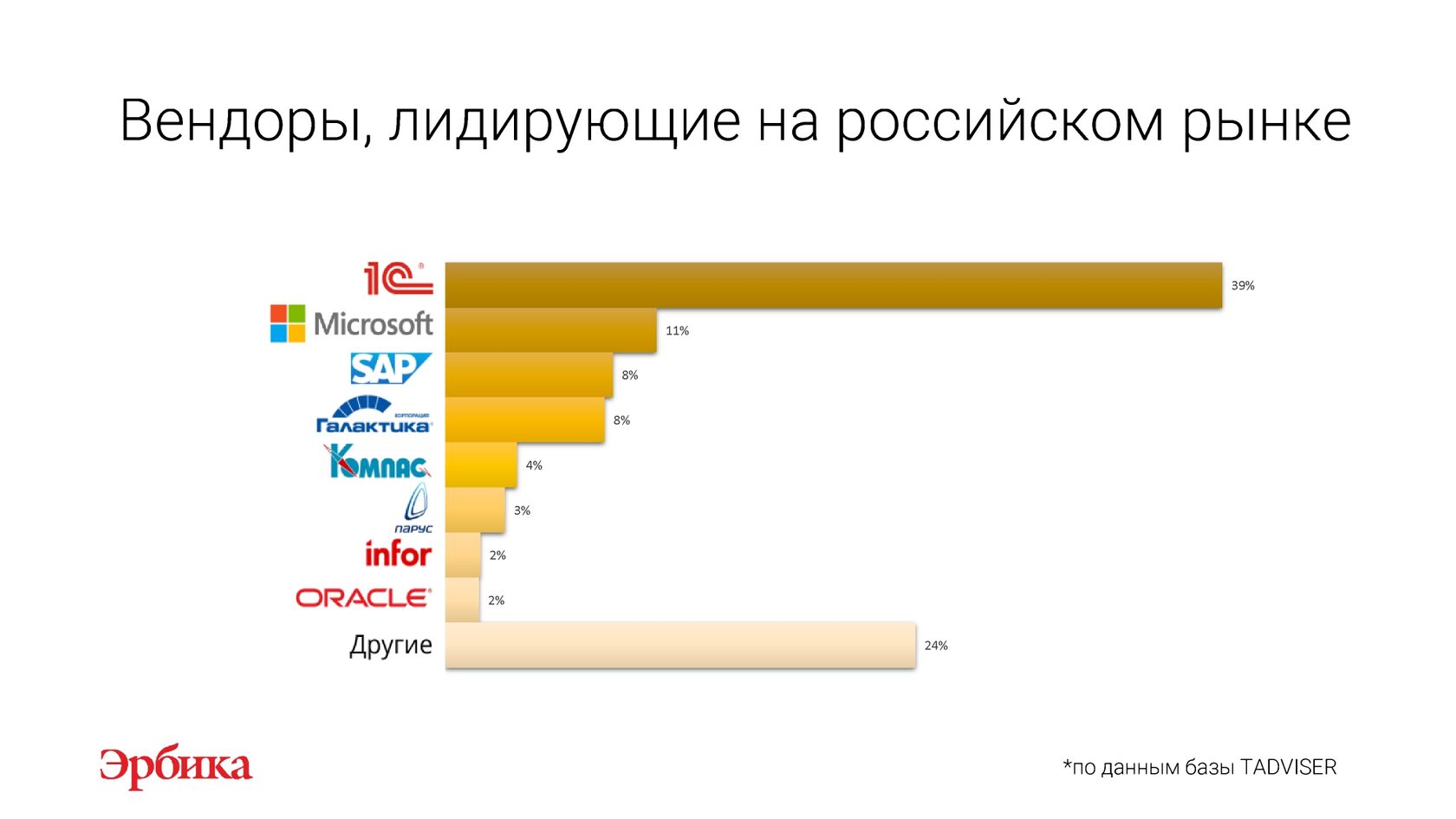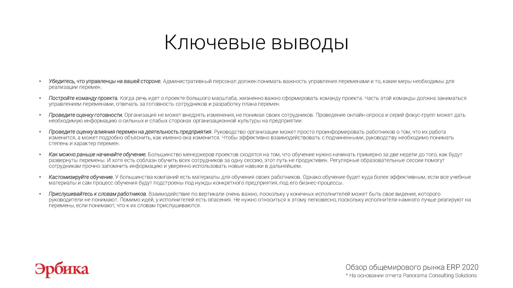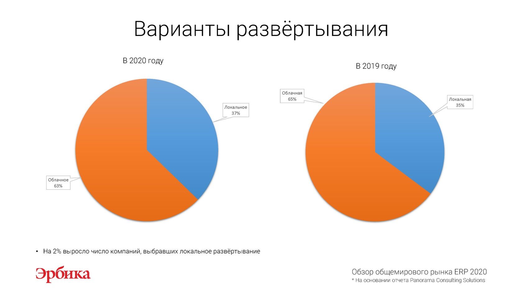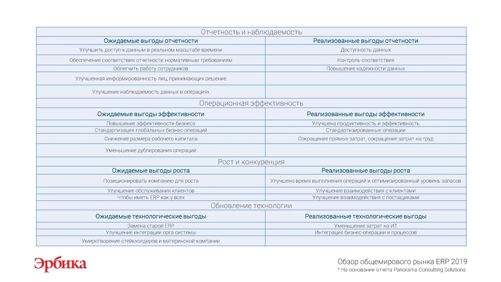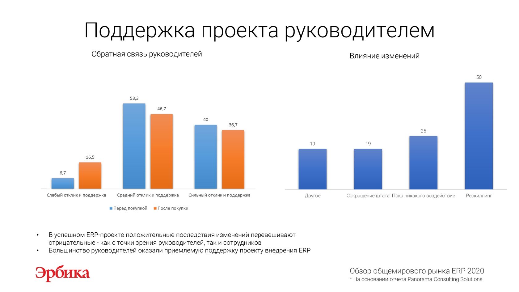 На основании отчета "Обзор рынка ERP 2020" международной исследовательской компании Panorama Consulting Solutions