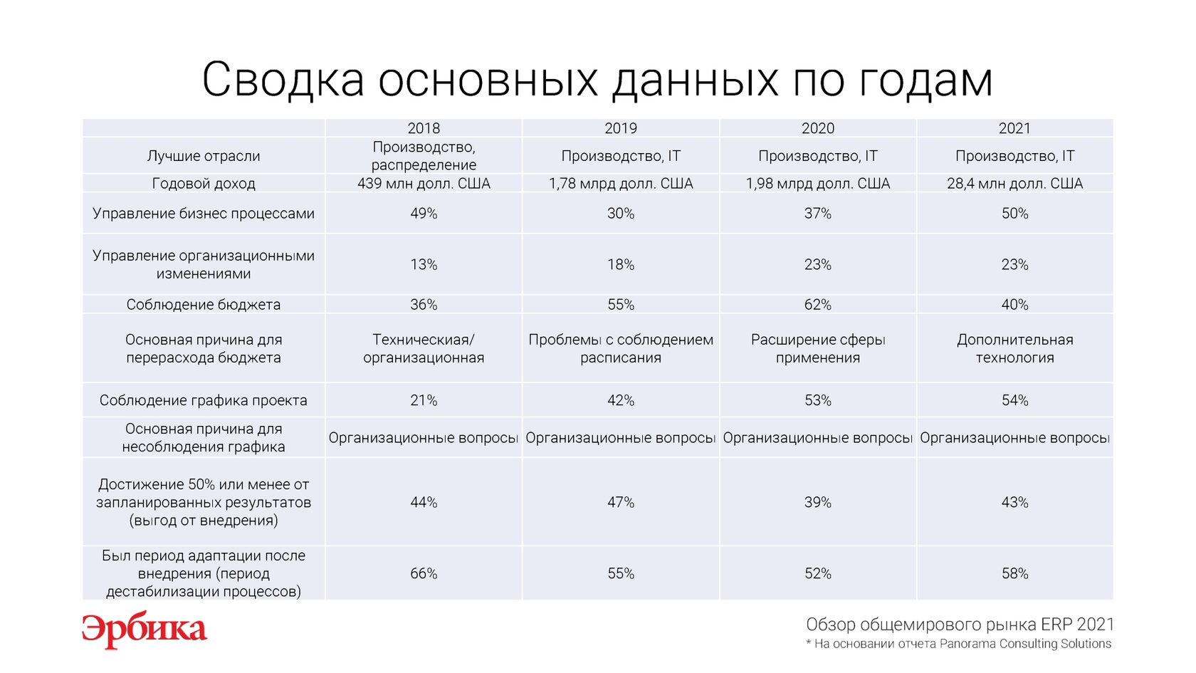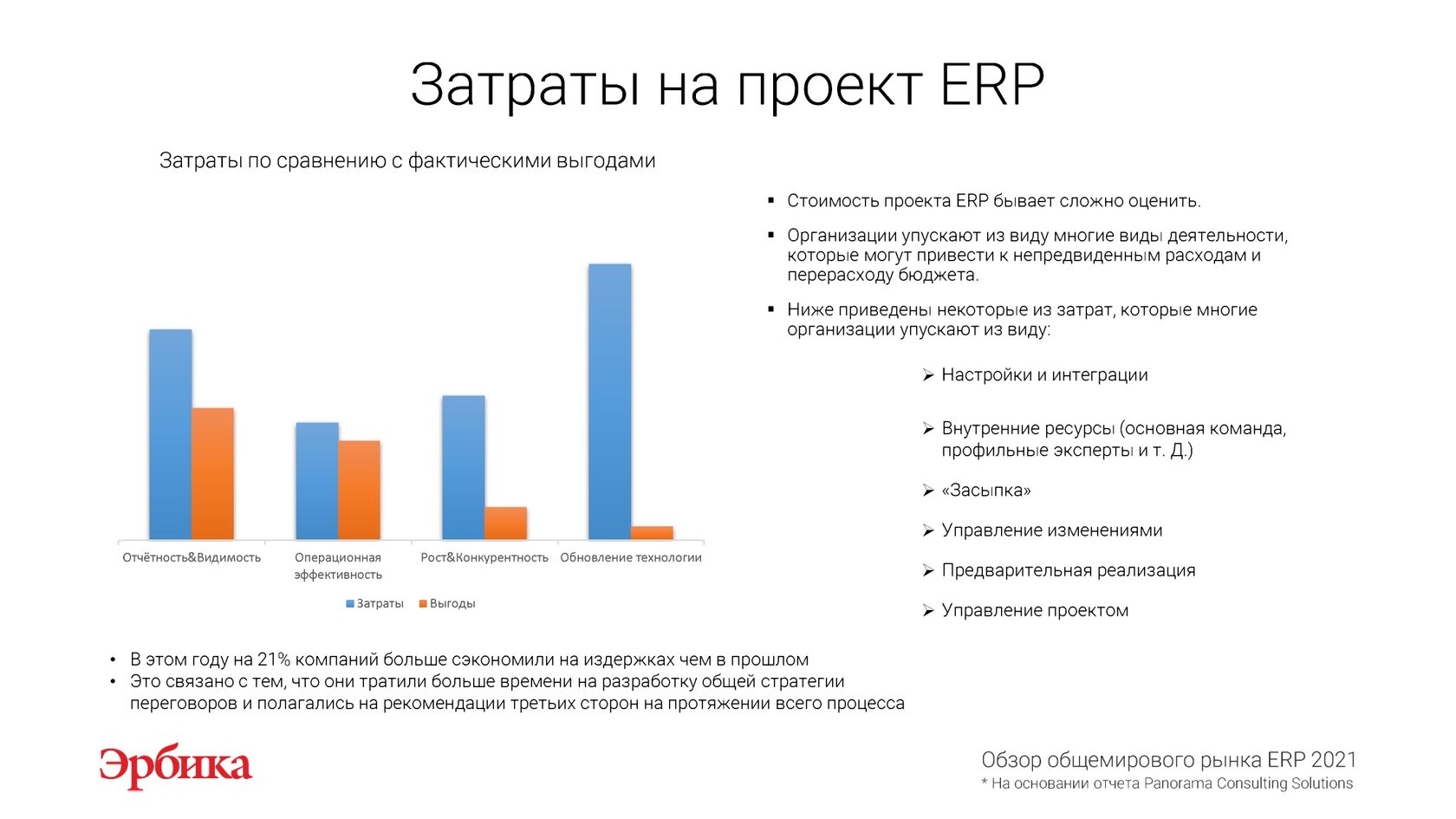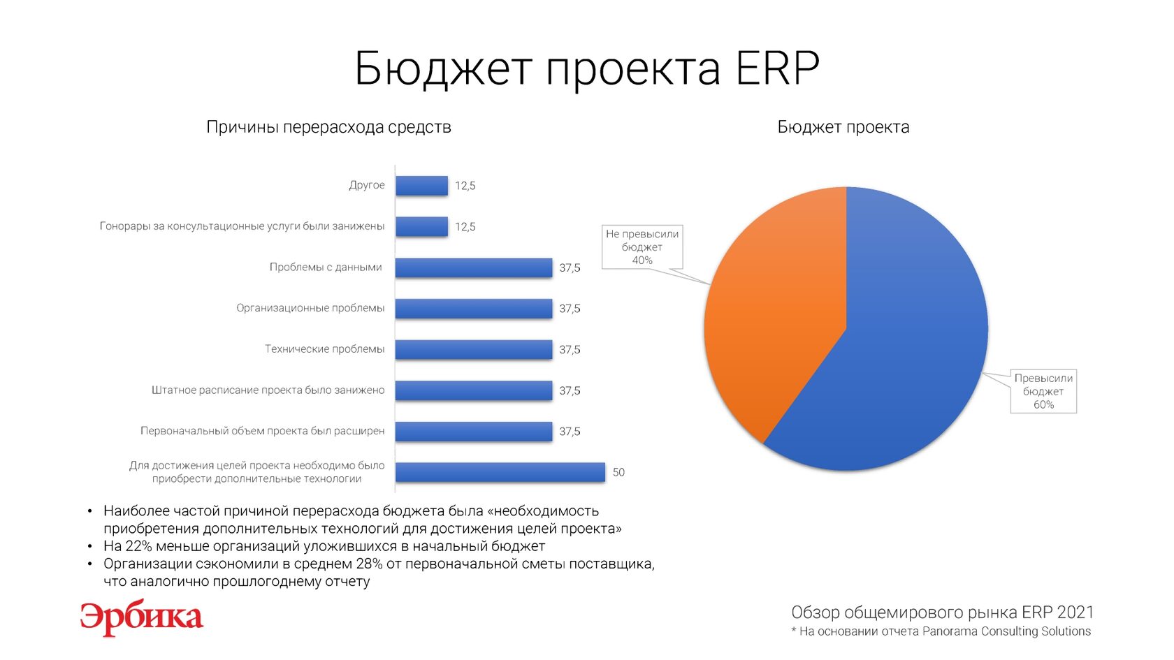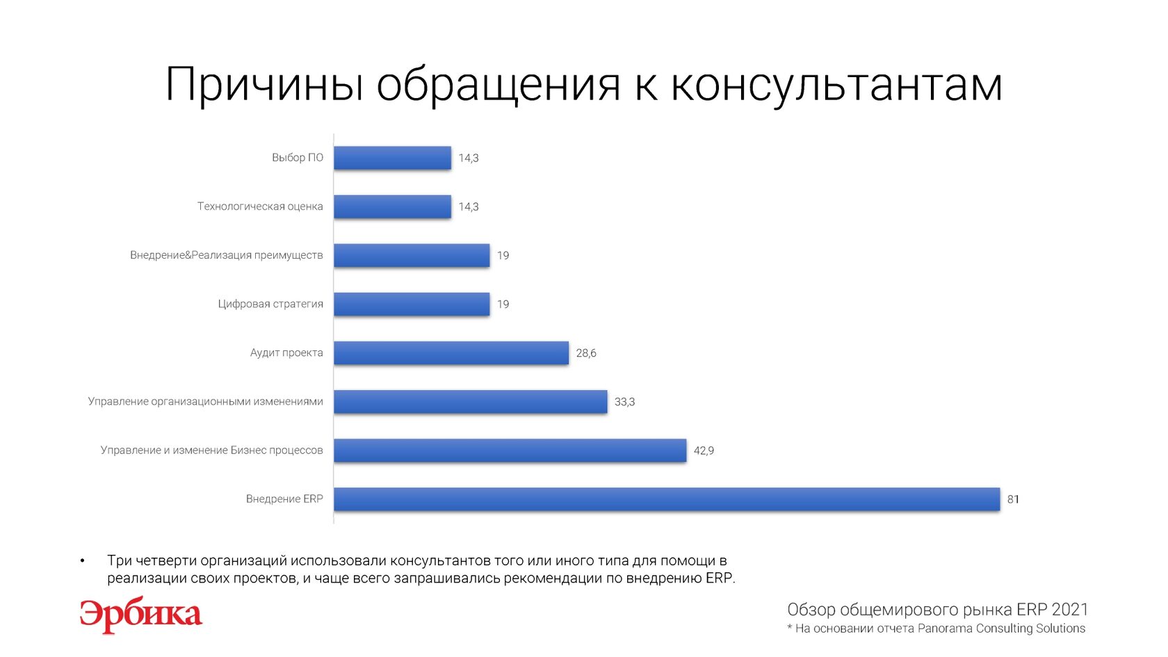 На основании отчета "Обзор рынка ERP 2021" международной исследовательской компании Panorama Consulting Solutions
