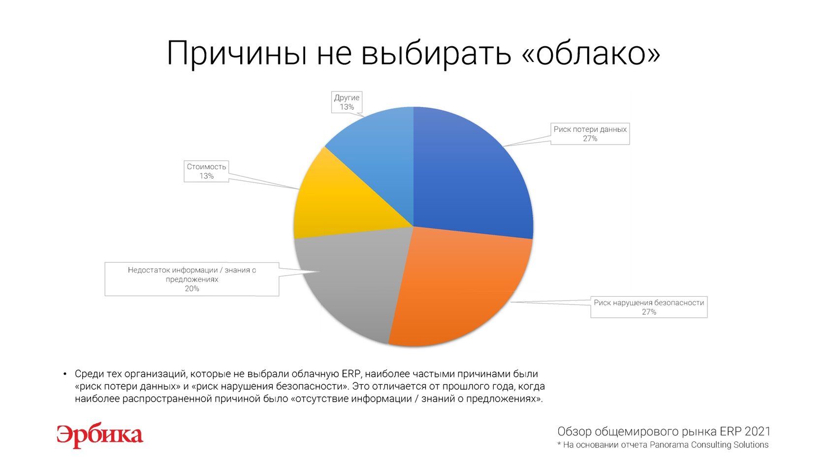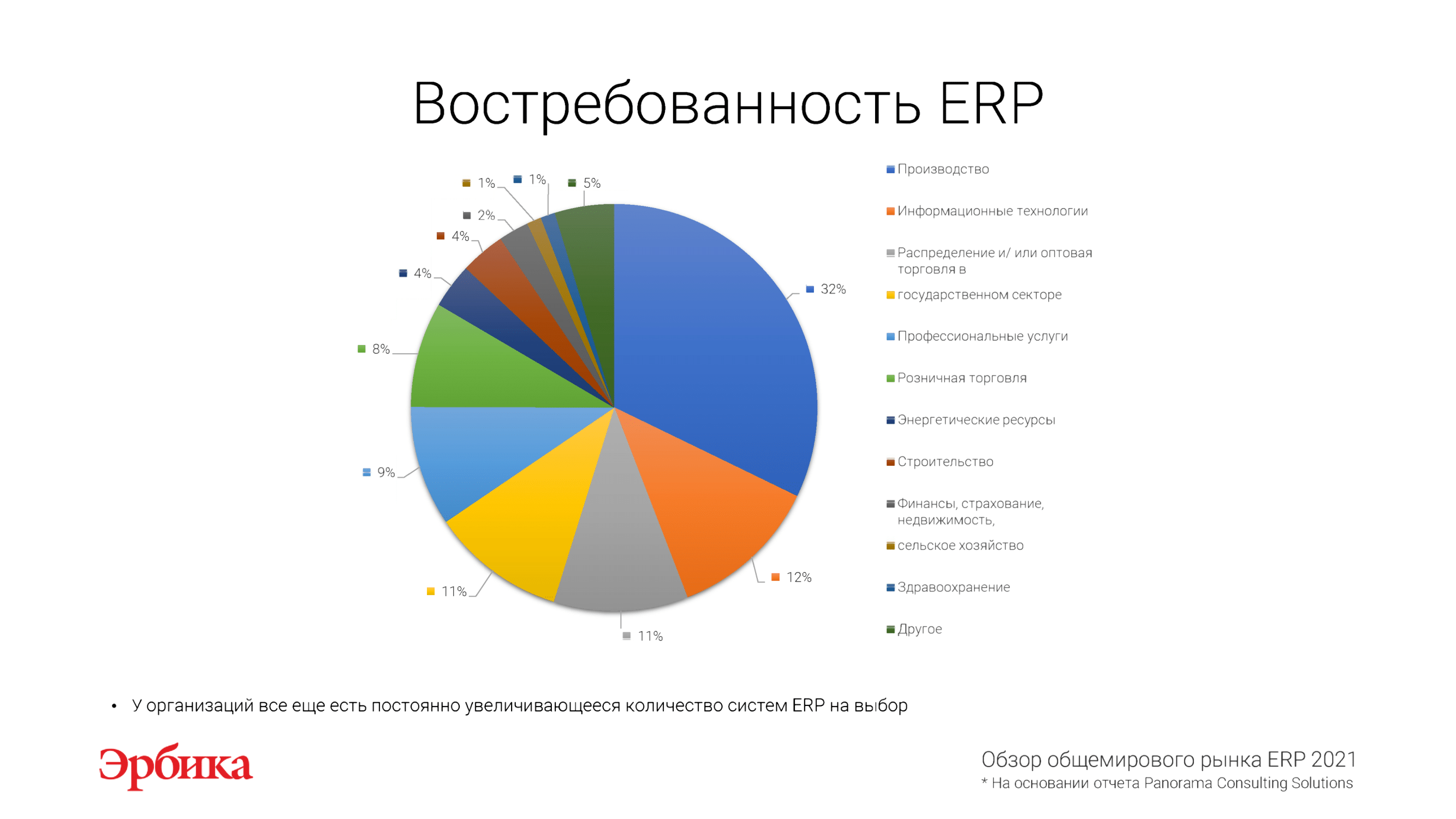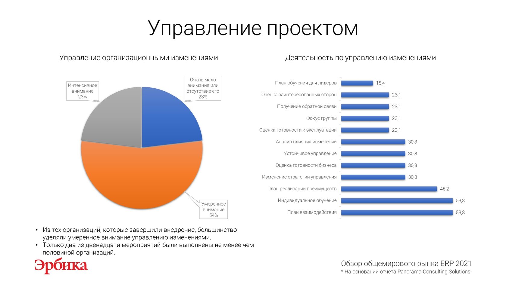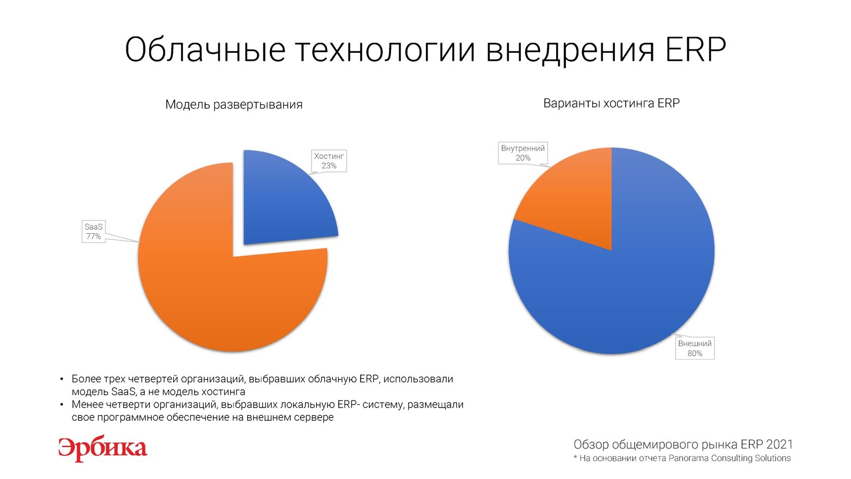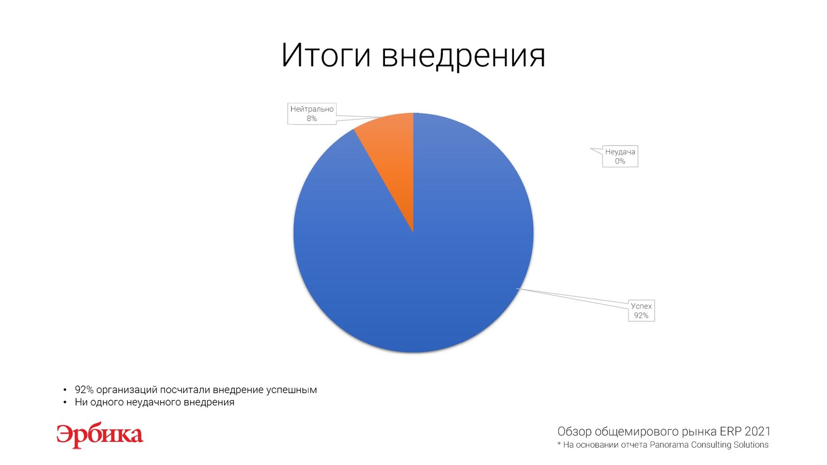 На основании отчета "Обзор рынка ERP 2021" международной исследовательской компании Panorama Consulting Solutions