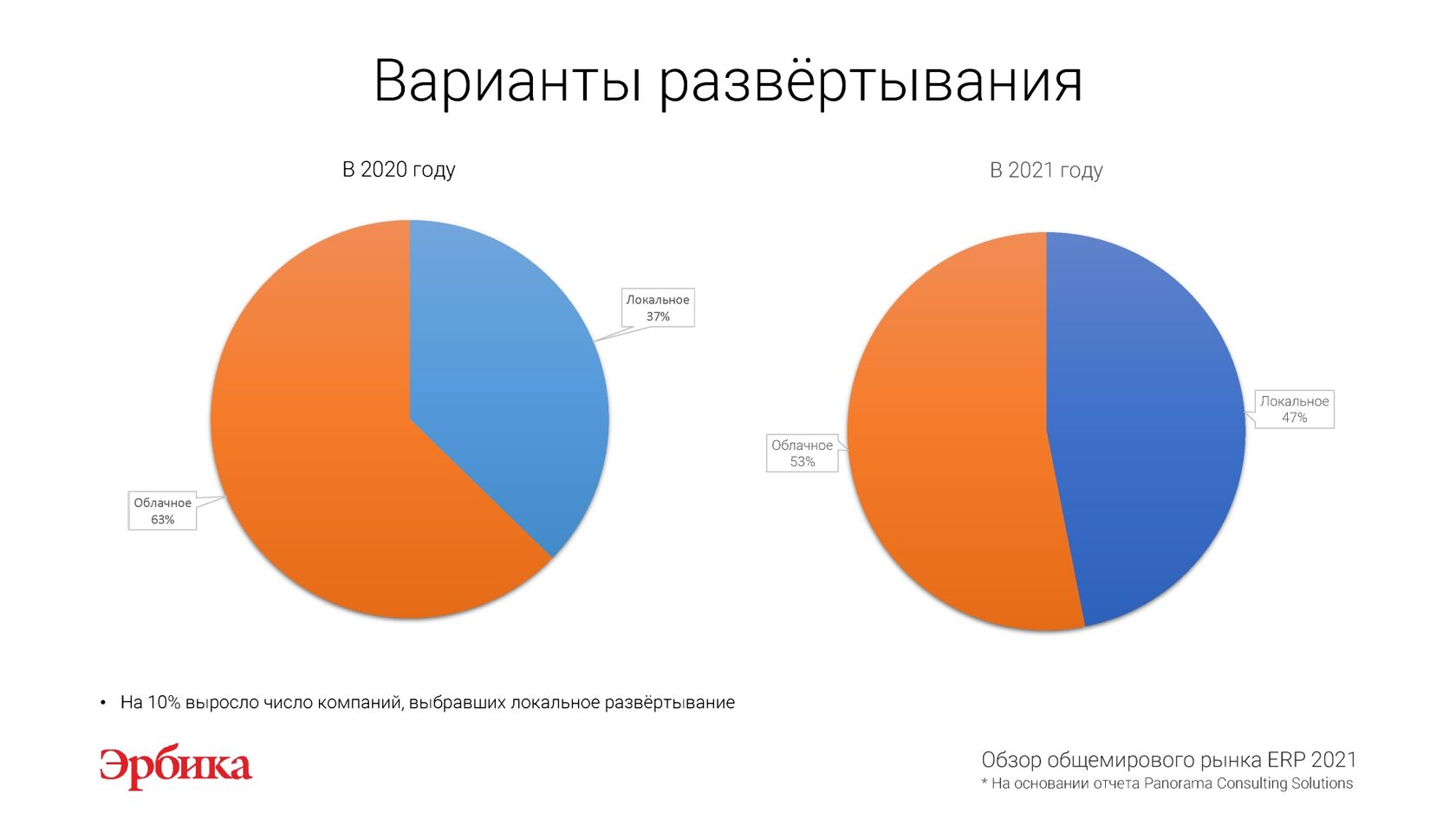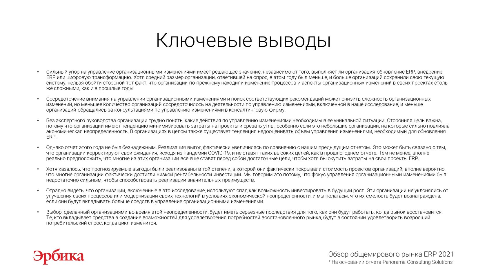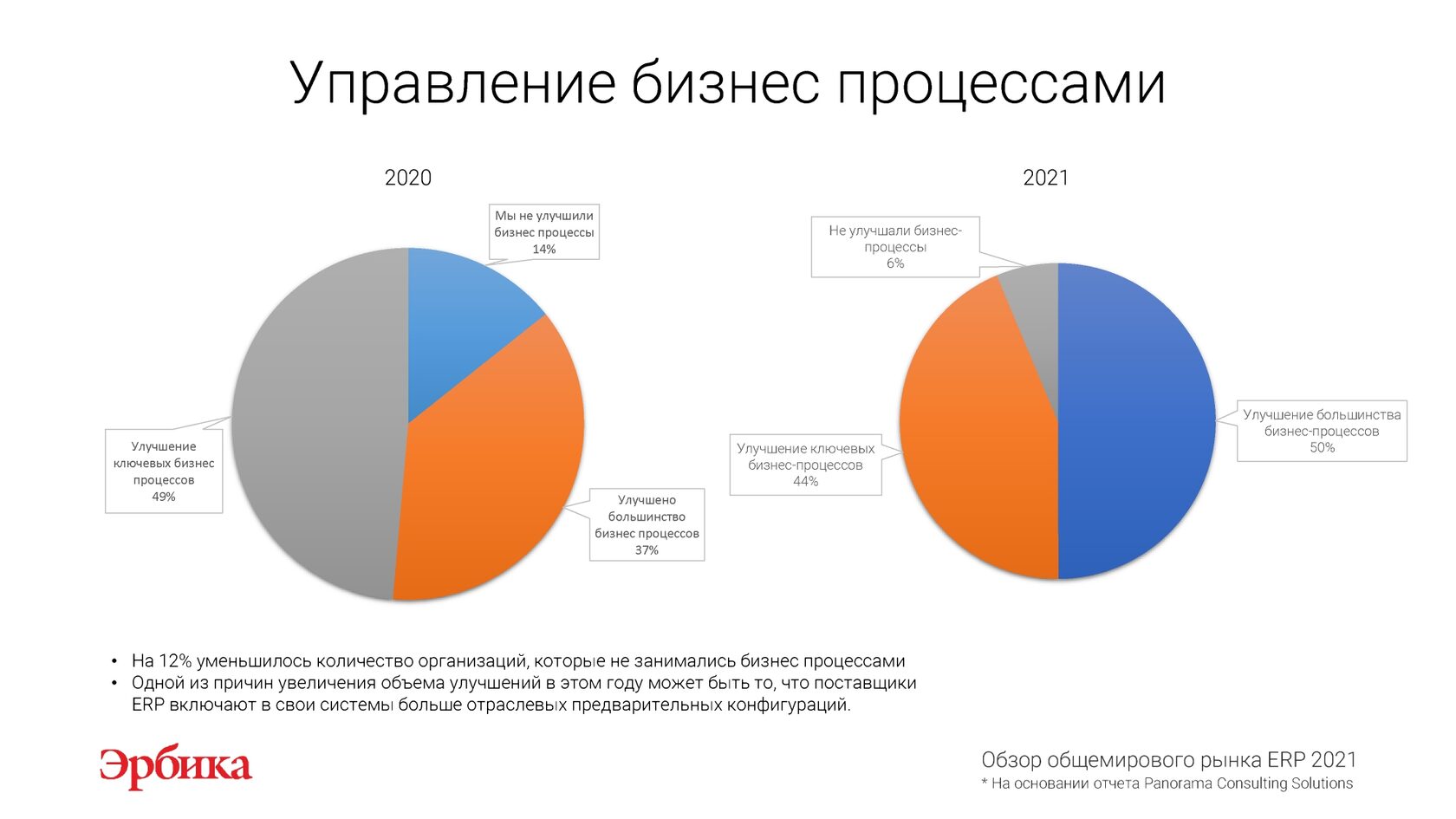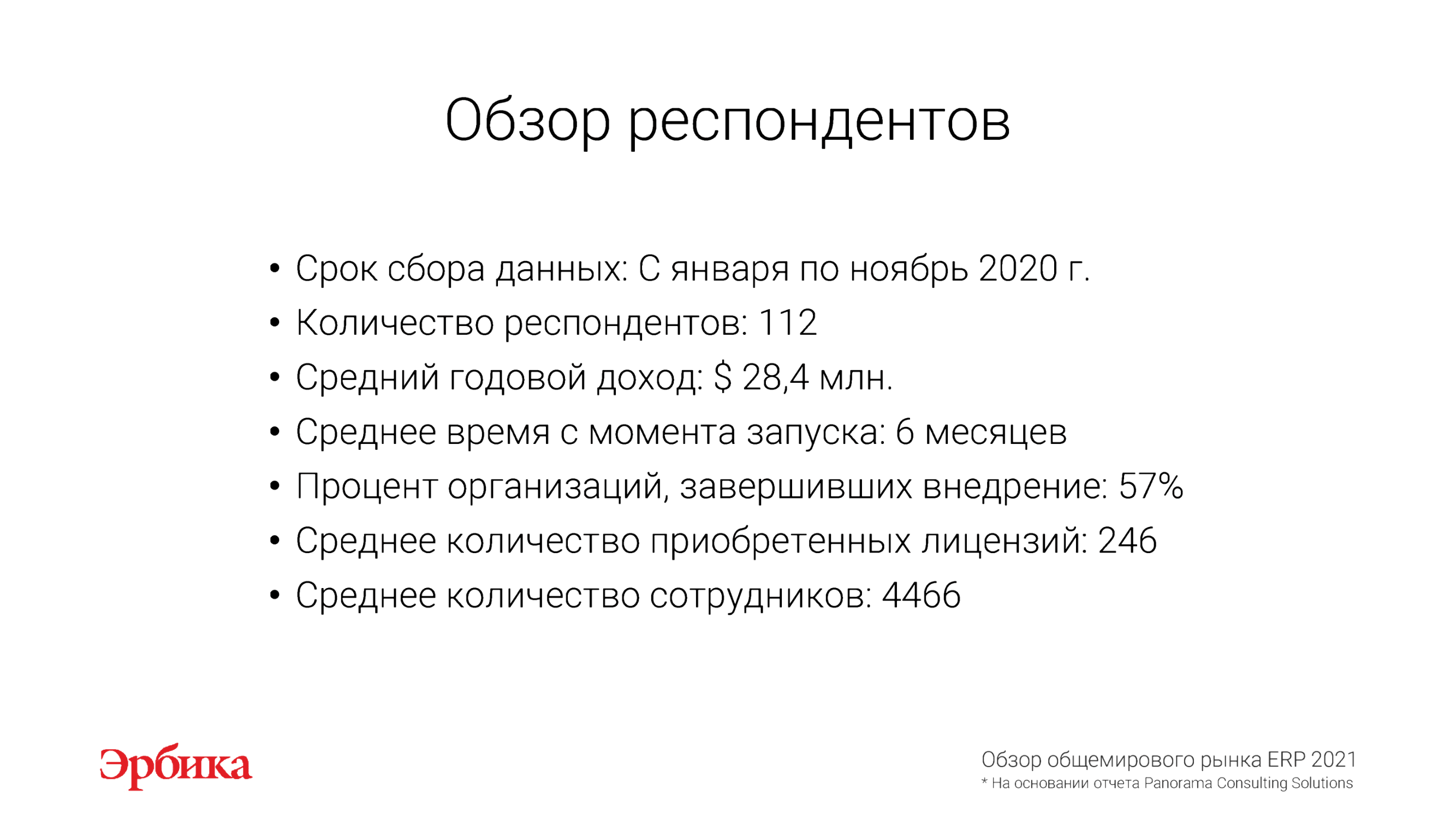 На основании отчета "Обзор рынка ERP 2021" международной исследовательской компании Panorama Consulting Solutions